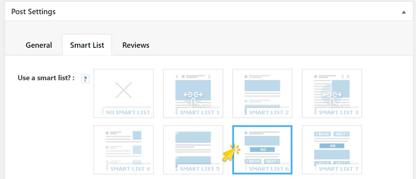 Scroll kebawah hingga terlihat kolom Post Setting, klik pada tab Smart List kemudian klik/pilih Smart List 6
