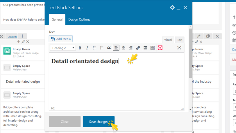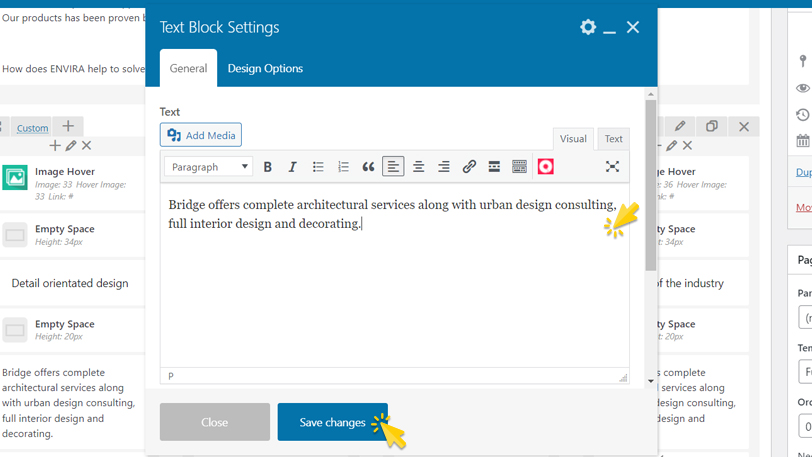 Edit teks konten pada popup yang tampil, klik Save changes untuk menyimpan hasil edit.