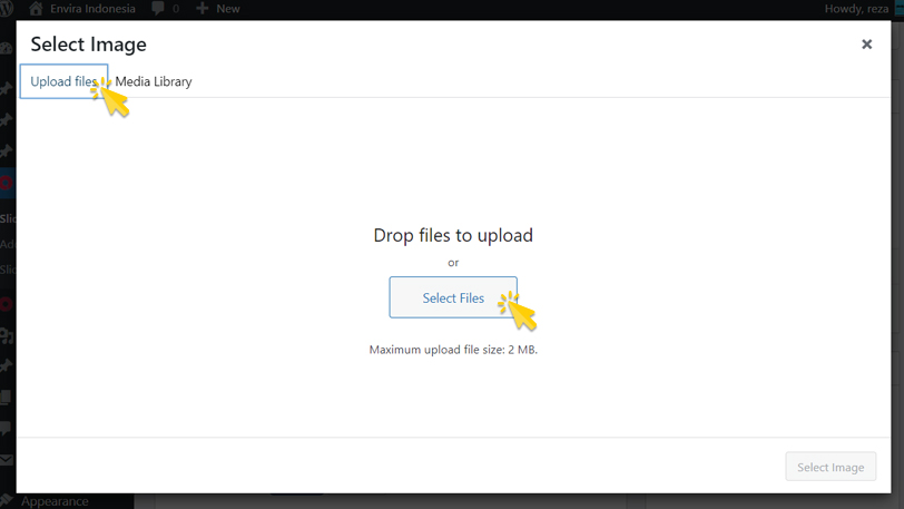 Pilih Upload Files, lalu klik tombol Select Files untuk mengunggah foto dari perangkat Anda