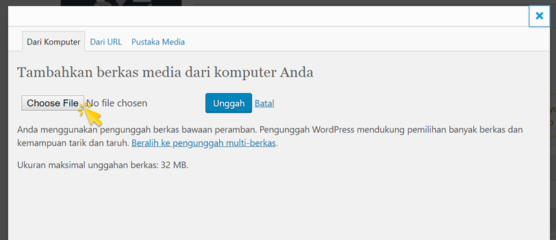Klik Upload untuk menampilkan jendela Unggah Media