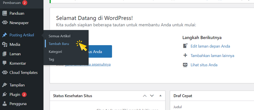 Pilih Tambah Baru pada menu Posting Artikel