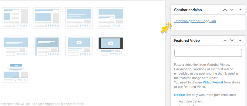 Pasang gambar unggulan sama seperti gambar iklan yang telah diunggah sebelumnya