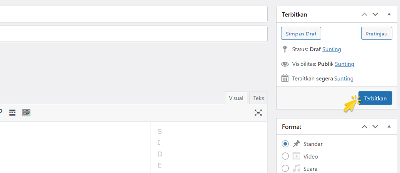 Klik tombol Terbitkan untuk menyimpan dan menampilkan artikel pada website