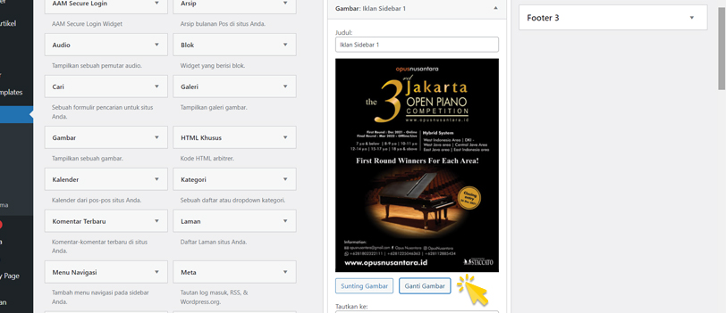 Klik icon segitiga (▾) pada list Gambar Iklan Sidebar 3