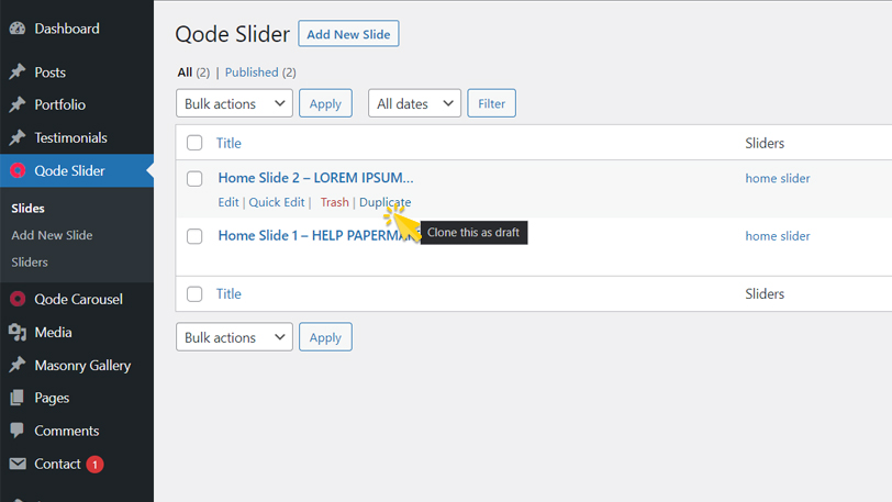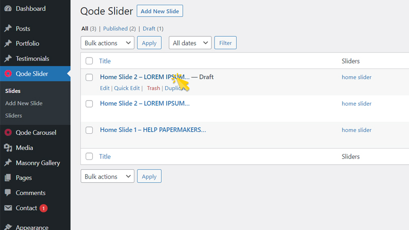 Kembali ketas, klik tombol Publish untuk menampilkan slider pada website.