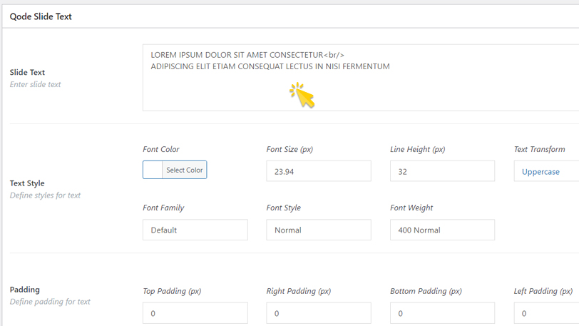 Scroll kebawah hingga tampil kolom Slide Text, lalu edit isi tulisan. Perlu diperhatikan tag <br/> berfungsi untuk pemisah kalimat (enter)