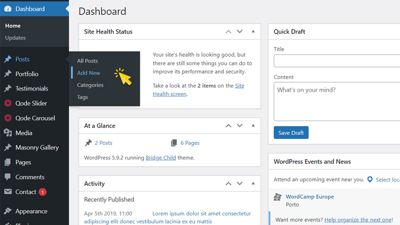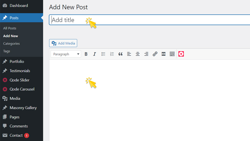 Isikan Judul pada Add title serta isi artikel pada kolom besar bawahnya