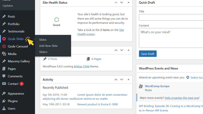 Pilih menu Qode Slider