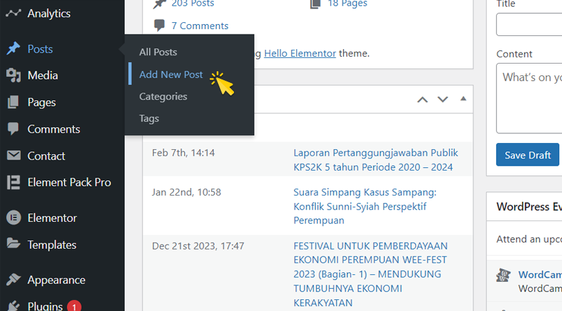 Beri centang (cek) pada kolom Kategori sesuai kategori berita yang akan diposting