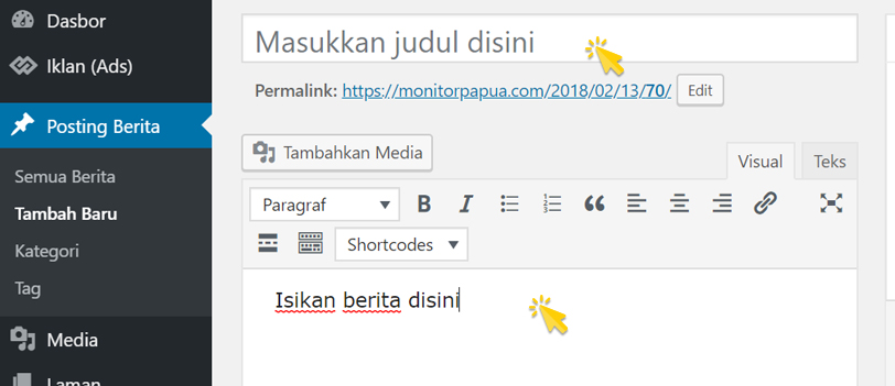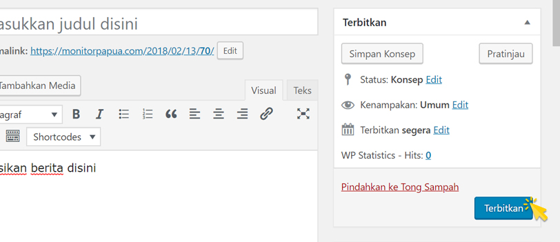 Setelah selesai semua mengisi konten berita tersebut, kemudian klik Terbitkan