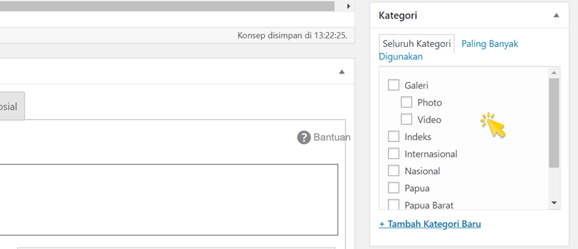Beri centang (cek) pada kolom Kategori sesuai kategori berita yang akan diposting