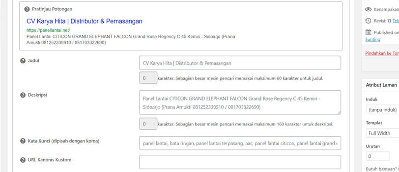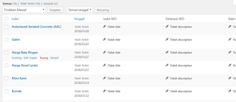 Pilih dan edit halaman yang akan di optimasi SEOnya.