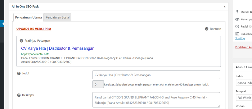 Scroll kebawah hingga tampak kolom All in One SEO Pack
